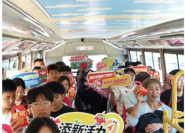 Autumn brings refreshing air and bountiful harvests of fruits. The Yantai Apple-themed Happy Bus, guided by sweetness and connected by culture, not only delivers surprises to freshmen for their enrollment but also deeply conveys the city’s warmth and industrial charm. As the wheels roll forward, the “Apple Bus” is heading for a “Happy Life,” unveiling a new picture of Yantai, a city fragrant with fruit aroma and bursting with vitality.