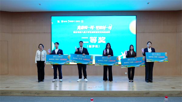 烟台城市科技职业学院“我是第一”队、烟台工程职业技术学院“蛋仔派队”获得本届大赛新锐组二等奖;烟台文化旅游职业学院“起名好难队”、烟台卫生健康职业学院“八方来财队”、烟台理工学院“你们还能有我们队”、烟台文化旅游职业学院“金牌带货王”队、烟台幼儿师范高等专科学校“突出重围”队获得创梦组二等奖。
